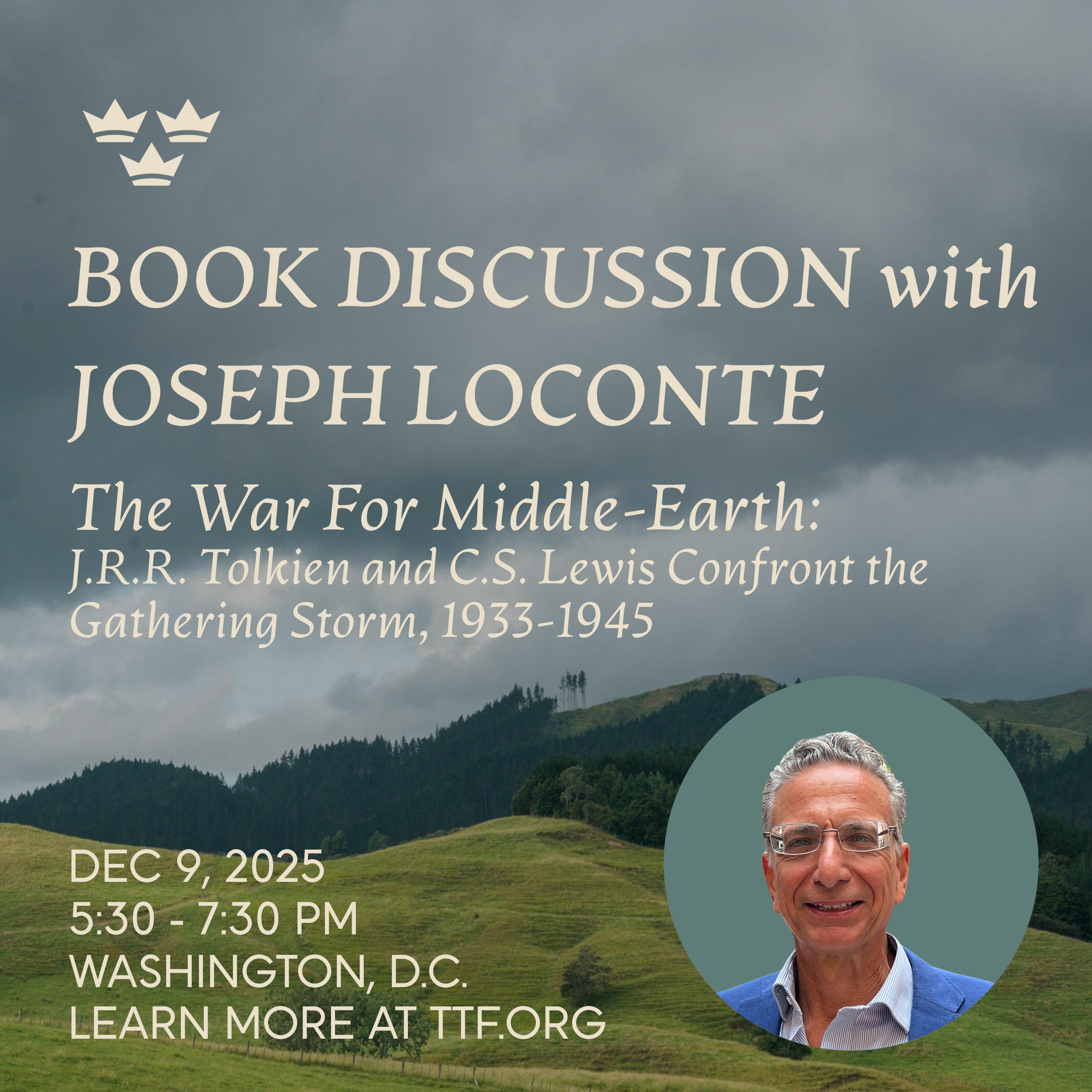 The Trinity Forum invites you to join us in DC on December 9 at 5:30 PM for a reception and discussion to celebrate Trinity Forum Senior Fellow Joseph Loconte’s latest book, The War for Middle-Earth: J.R.R. Tolkien and C.S. Lewis Confront the Gathering Storm, 1933-1945.